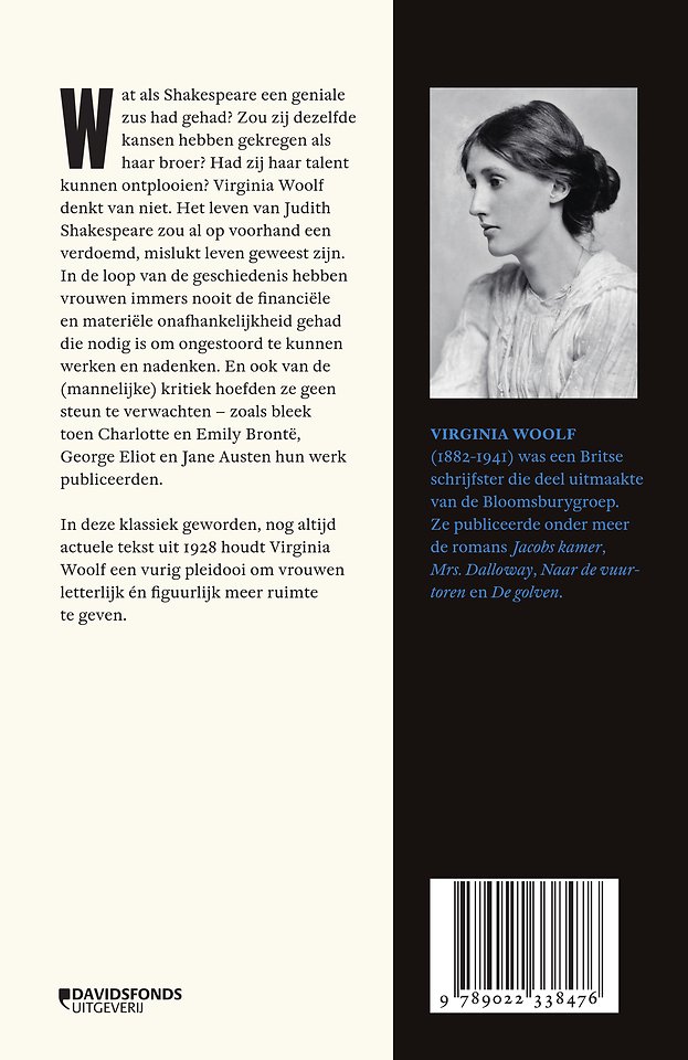 Wat als Shakespeare een geniale zus had gehad? Zou zij dezelfde kansen hebben gekregen als haar broer? Had zij haar talent kunnen ontplooien? Virginia Woolf denkt van niet. Het leven van Judith Shakespeare zou al op voorhand een verdoemd, mislukt leven geweest zijn. In de loop van de geschiedenis hebben vrouwen immers nooit de financiële en materiële onafhankelijkheid gehad die nodig is om ongestoord te kunnen werken en nadenken. En ook van de (mannelijke) kritiek hoefden ze geen steun te verwachten – zoals bleek toen Charlotte en Emily Brontë, George Eliot en Jane Austen hun werk publiceerden.