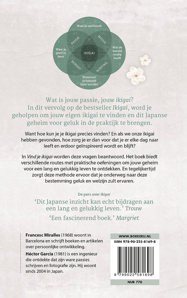Na het ontdekken van het geheim voor een lang en gelukkig leven in Ikigai, ‘de reden van je bestaan’ of je ‘levenspassie’, keren Héctor García en Francesc Miralles terug naar de duizend jaar oude Japanse cultuur om een praktische methode te ontwikkelen waarmee je je levensdoelen kunt realiseren. Want hoe kun je je ikigai precies vinden? En als we onze ikigai hebben gevonden, hoe zorg je er dan voor dat je er elke dag naar leeft en erdoor geïnspireerd wordt en blijft?