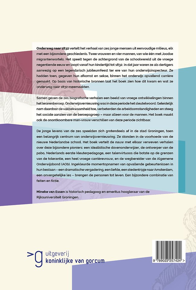 Onderweg naar 1832 vertelt het verhaal van zes jonge mensen uit eenvoudige milieus, met ieder een bijzondere geschiedenis. Twee vrouwen en vier mannen, van wie één met Joodse migrantenwortels. Het speelt tegen de achtergrond van de schoolwereld uit de vroege negentiende eeuw en loopt vanaf hun kindertijd tot 1832. In dat jaar waren ze als dertigers aanwezig op een legendarisch jubileumfeest ter ere van hun onderwijsinspecteur. Ze hadden toen, gegeven hun afkomst en sekse, binnen het onderwijs opvallend carrière gemaakt. Op basis van historische bronnen laat het boek zien hoe dit kwam en wat ze onderweg naar 1832 meemaakten.