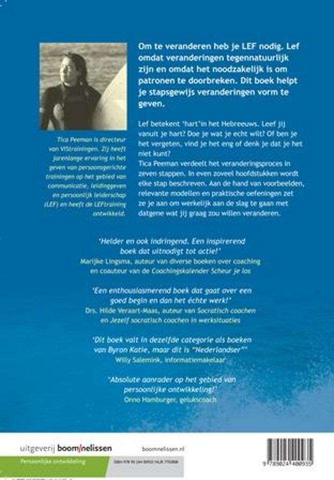 Meer over Tica PeemanOm te veranderen heb je LEF nodig. Lef omdat veranderingen tegennatuurlijk zijn en omdat het noodzakelijk is om patronen te doorbreken. Dit boek helpt u stapsgewijs veranderingen vorm te geven.