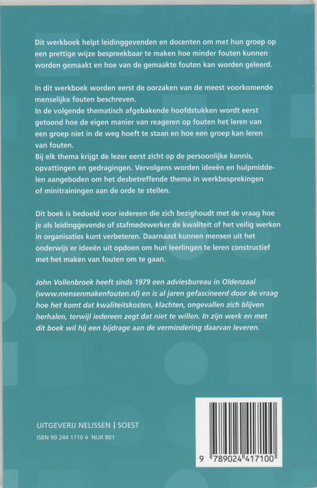 Dit werkboek helpt leidinggevenden en docenten om met hun groep op een prettige wijze bespreekbaar te maken hoe minder fouten kunnen worden gemaakt en hoe van de gemaakte fouten kan worden geleerd.