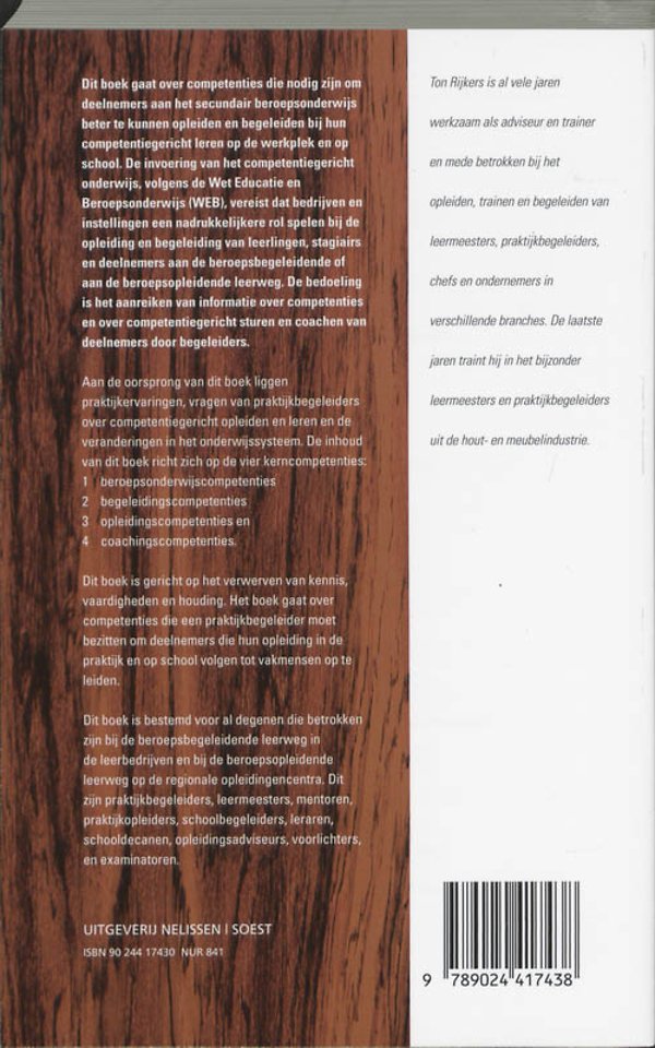 Dit boek gaat over competenties die nodig zijn om deelnemers aan het secundair beroepsonderwijs beter te kunnen opleiden en begeleiden bij hun competentiegericht leren op de werkplek en op school. De invoering van het competentiegericht onderwijs, volgens de Wet Educatie en Beroepsonderwijs (WEB), vereist dat bedrijven en instellingen een nadrukkelijkere rol spelen bij de opleiding en begeleiding van leerlingen, stagiairs en deelnemers aan de beroepsbegeleidende of aan de beroepsopleidende leerweg. De bedoeling is het aanreiken van informatie over competenties en over competentiegericht sturen en coachen van deelnemers door begeleiders.