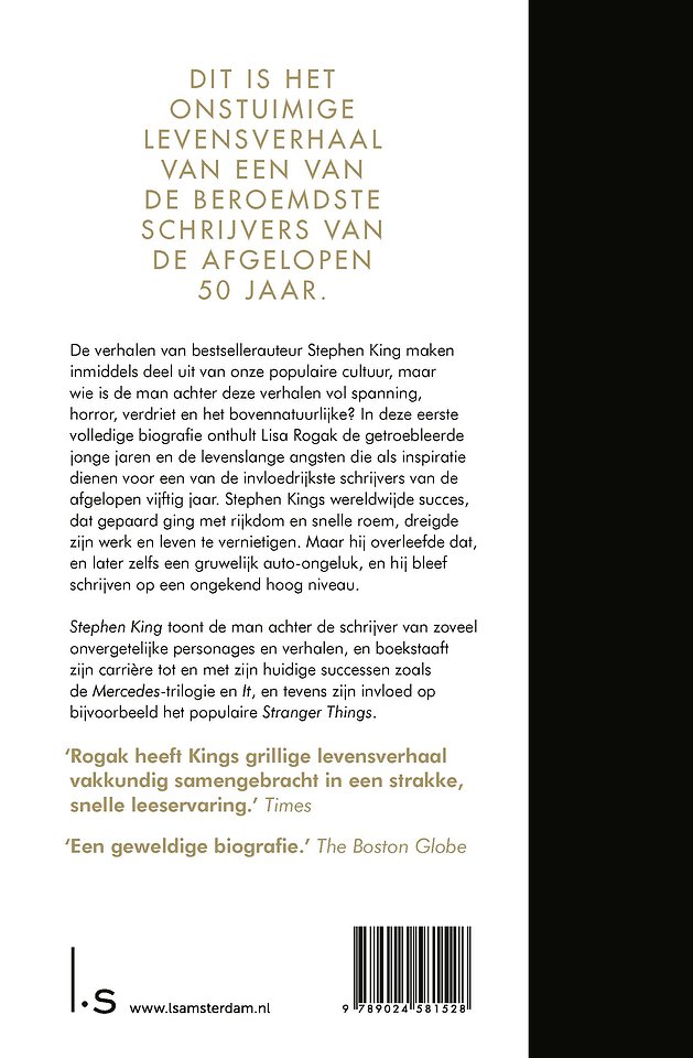 De verhalen van King maken inmiddels deel uit van onze populaire cultuur, maar wie is de man achter deze verhalen vol horror, verdriet en het bovennatuurlijke? In deze biografie onthult Lisa Rogak de getroebleerde jonge jaren en de levenslange angsten die als inspiratie dienen voor een van de invloedrijkste schrijvers van de afgelopen 50 jaar.
