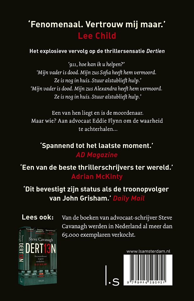 In Fifty Fifty van Steve Cavanagh (Dertien, Verdraaid) staat advocaat Eddie Flynn voor een nieuw mysterie. De zussen Alexandra en Sofia Avellino hebben net, afzonderlijk van elkaar, het verminkte lichaam van hun vader gevonden. Doodsbang bellen ze allebei de politie. Ze weten het zeker: de ander heeft het gedaan. Maar een van de vrouwen liegt! Een van deze vrouwen is de echte moordenaar.