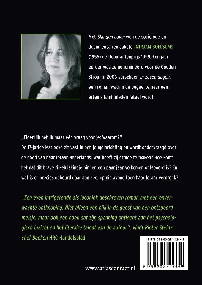 De 17-jarige Mariecke zit vast in een jeugdinrichting en wordt ondervraagd over de dood van haar lerares Nederlands. Wat heeft zij ermee te maken? Hoe komt het dat dit brave rijkeluiskindje binnen een jaar volkomen ontspoord is? En wat is er precies gebeurd daar aan zee, op die avond toen haar leraar verdronk?