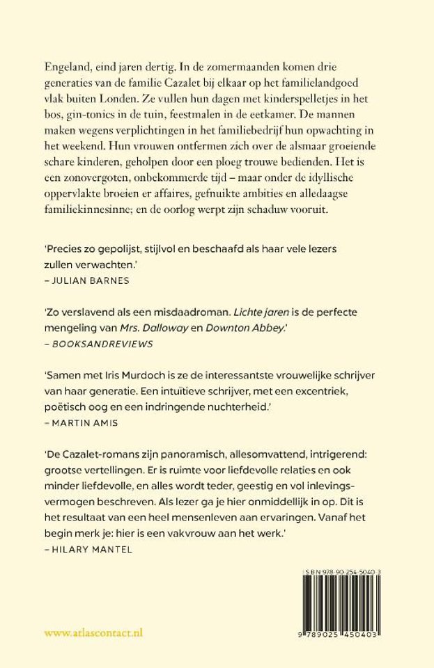 Deel 1, 'Lichte jaren', begint eind jaren dertig, in de laatste gouden jaren voor het uitbreken van de Tweede Wereldoorlog. In de zomermaanden komen drie generaties van de familie Cazalet bij elkaar op hun familielandgoed vlak buiten Londen. Ze vullen hun dagen met kinderspelletjes in het bos, picknicken op het strand, gin-tonics in de tuin, feestmalen in de eetkamer. Het is een zonovergoten, onbekommerde tijd - maar onder de idyllische oppervlakte broeien er affaires en gefnuikte ambities; en de oorlog werpt zijn schaduw vooruit.