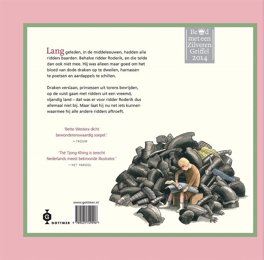 Lang geleden, in de middeleeuwen, hadden alle ridders baarden. Behalve ridder Roderik, en die telde dan ook niet mee. Ridders zonder baarden waren alleen maar goed om het bloed van dode draken op te dweilen, harnassen te poetsen en aardappels te schillen. Draken verslaan, prinsessen uit torens bevrijden, op de vuist gaan met ridders uit een vreemd, vijandig land - dat was er voor ridder Roderik dus allemaal niet bij. Maar laat hij nu net iets kunnen waarmee hij alle andere ridders aftroeft...