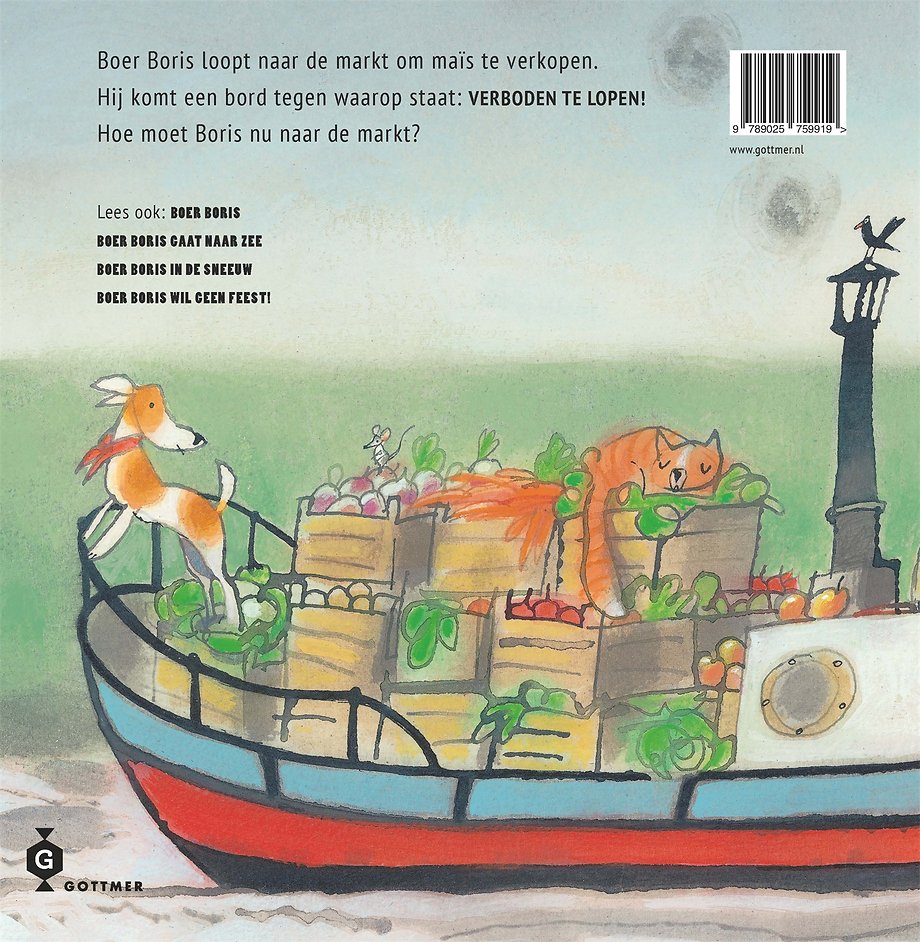 In 'Boer Boris gaat naar de markt' wil Boer Boris naar de markt om zijn producten te verkopen. Maïs, pudding, kaas, brood, aardappels, groenten... Hij wil er vanaf! Maar hoe moet hij op de markt komen? De verkeerssituatie is erg onduidelijk en geen enkel voertuig lijkt toegestaan. Fietsen, auto's en ook raketten zijn verboden. Zal Boris zijn weg naar de markt kunnen vinden? Voor kinderen vanaf 3 jaar.