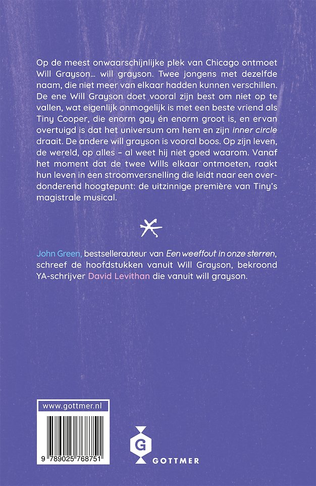 De tweede will grayson is vooral boos. Boos op zijn leven, op de wereld, op alles - al weet hij eigenlijk niet waarom. En dan heeft hij ook nog een tamelijk irritante beste vriendin die nooit begrijpt wanneer hij alleen gelaten wil worden.
