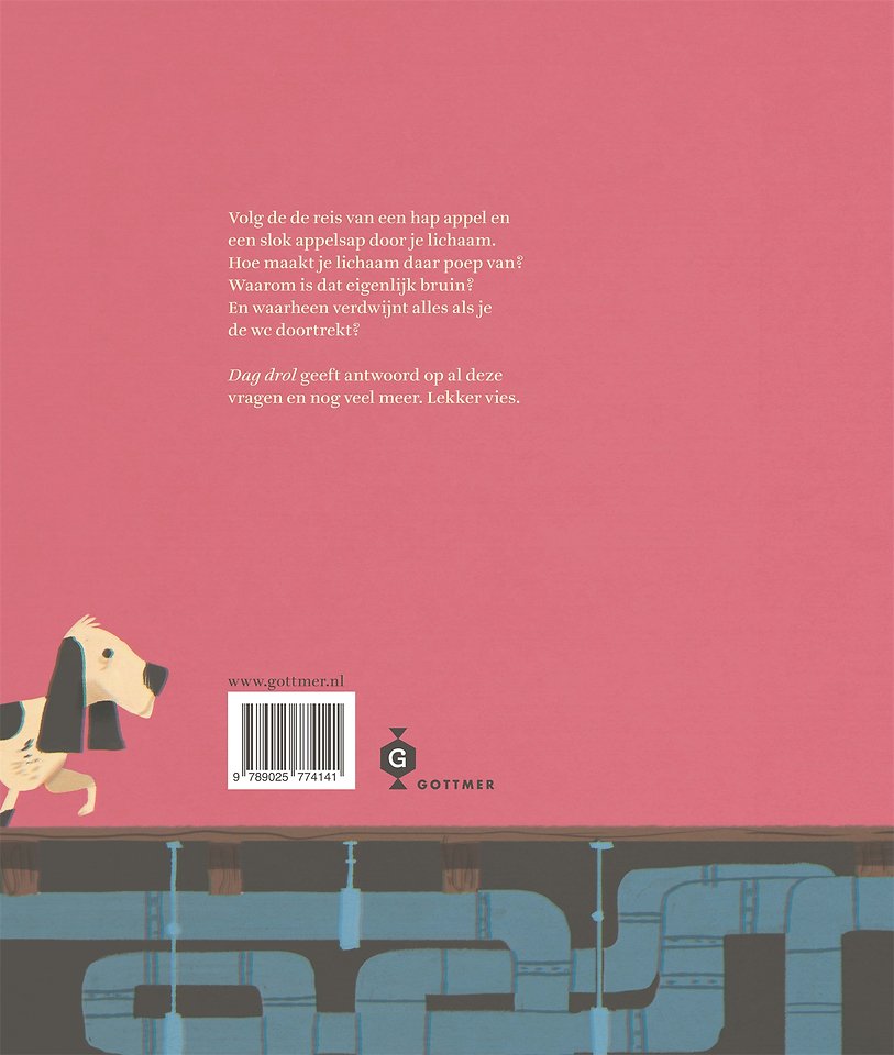 'Dag drol' is een prentenboek over de grote reis van je eten: van je mond tot in de wc - en zelfs nog verder! Hoe maakt je lichaam poep van eten? En waarom is poep eigenlijk bruin? In 'Dag drol' wordt de reis van een hap appel en een slok appelsap door het lichaam gevolgd. En die reis eindigt niet in de wc, maar vervolgt ook de weg door het riool.