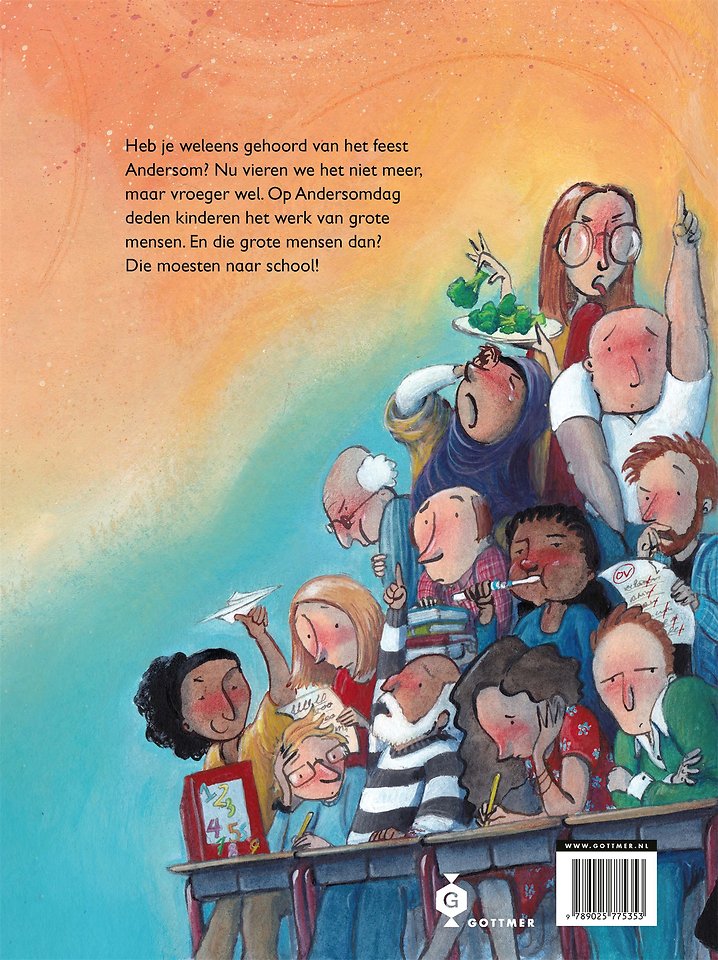 In dit tijdloze korte verhaal van meesterverteller Paul Biegel nemen kinderen de beroepen van grote mensen over! De Biegel-klassieker 'Het feest Andersom' is nu voor het eerst verkrijgbaar als prentenboek, met eigentijdse illustraties van Aron Dijkstra. Heb je weleens gehoord van het feest Andersom? Nu vieren we het niet meer, maar vroeger wel. Op het feest Andersom gingen de kinderen naar het werk en moesten de grote mensen naar school. De kinderen werden voor een dag de meester of juf, of nieuwslezer, of dokter, of politieagent, of ze gingen bij de brandweer. Het was elk jaar een hele leuke dag. Jammer dat die niet meer bestaat.