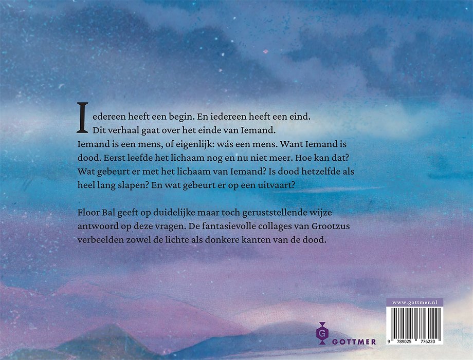In het non-fictieprentenboek 'Het einde van Iemand' geeft Floor Bal antwoorden op alle moeilijke vragen over de dood. Voor kinderen vanaf 4 jaar.