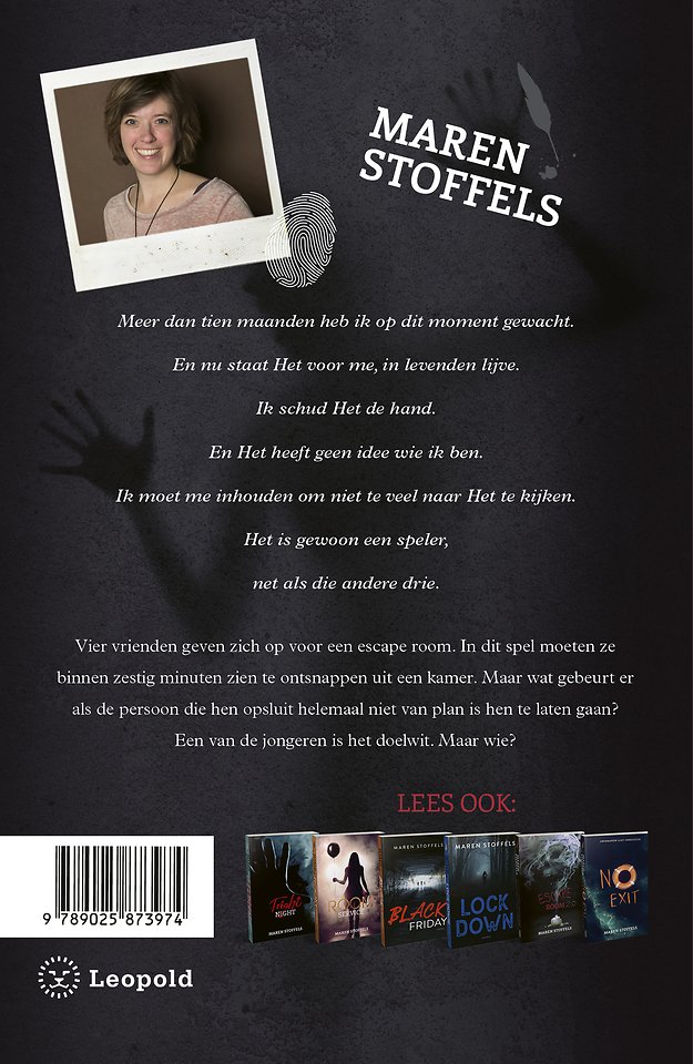 jeugdliteratuur   thriller   young adult   escape room   vriendschap   spanning   psychologie   wraak   angst   geheimen   identiteit   adolescentie   onzekerheid   eerste liefde   trauma   vertrouwen   zelfbeeld   overleven   empathie   manipulatie   tieners   acceptatie   ontsnapping   familie   uiterlijk   verliefdheid   wanhoop   confrontatie   beproeving   aantrekkingskracht