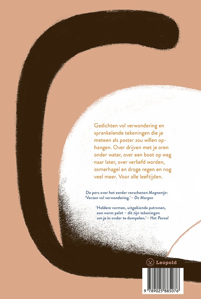 Gedichten vol verwondering en sprankelende tekeningen die een poëtische kijk op gevoelens en gebeurtenissen geven. Over drijven met je oren onder water, over een boot op weg naar later, over verliefd worden, over een dag vol geluk en nog veel meer. Voor alle leeftijden.