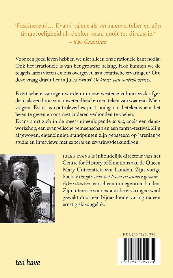 In De kunst van controleverlies laat Jules Evans zien dat we voor het goede leven behalve het rationele ook het irrationele nodig hebben. Maar de teugels laten vieren vinden we vaak eng. Evans laat zien hoe je dit veilig kunt doen. Hij gaat te rade bij talloze denkers en kunstenaars. Ook dompelt hij zich onder in onder andere een dansworkshop en een tantra-festival.