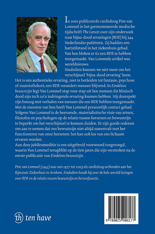 Tien jaar na Eindeloos bewustzijn is er een speciale jubileumeditie van Pim van Lommels bestseller over bijna-doodervaringen. Met zijn wetenschappelijke visie maakte Van Lommel veel los bij zowel medici als mensen die een bijna-doodervaring hebben meegemaakt. Nu is er een geheel nieuw voorwoord door de auteur geschreven om dit jubileum te vieren en te laten zien wat het boek teweeg heeft gebracht bij zowel de auteur als zijn lezers.