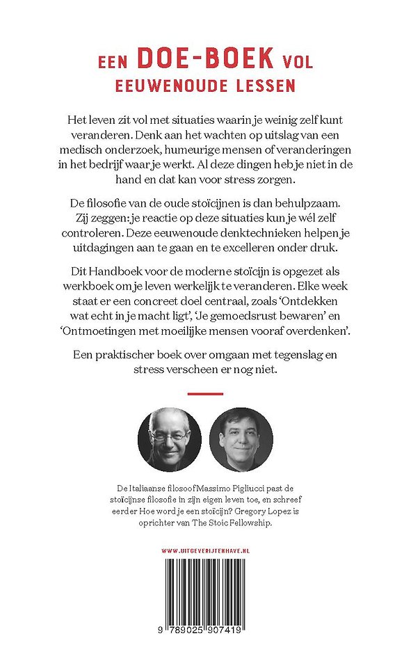 Dit Handboek voor de moderne stoïcijn is opgezet als werkboek om je leven werkelijk te veranderen. Elke week staat er een concreet doel centraal, zoals ‘Ontdekken wat echt in je macht ligt’, ‘Je gemoedsrust bewaren’ en ‘Ontmoetingen met moeilijke mensen vooraf overdenken’.