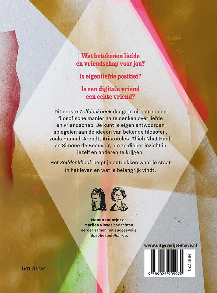Dit eerste Zelfdenkboek gaat over liefde en vriendschap. Je noteert je antwoorden op filosofische vragen over dit thema in het boek. Daarna kun je je eigen ideeën vergelijken met die van bekende filosofen, om zo dieper inzicht te krijgen.