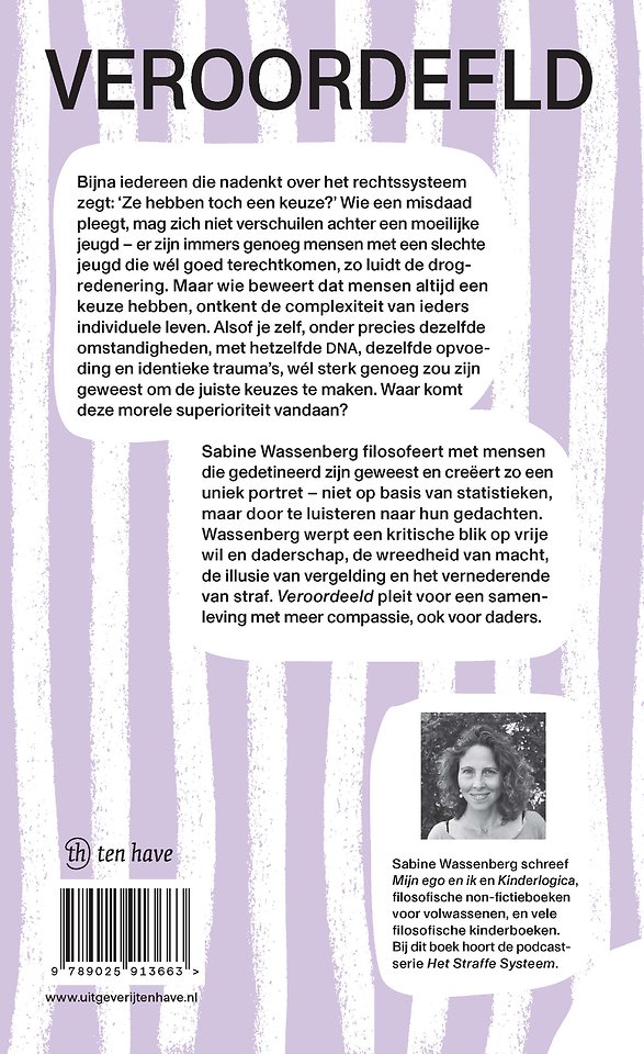 Wassenberg werpt een nieuw en tegendraads licht op hoe we over daderschap en verantwoordelijkheid denken en laat zien waarom het wringt om deze jongeren zo makkelijk af te schrijven. In een tijd waarin harder straffen de norm is, biedt dit boek een broodnodige filosofische reflectie op ons strafsysteem.