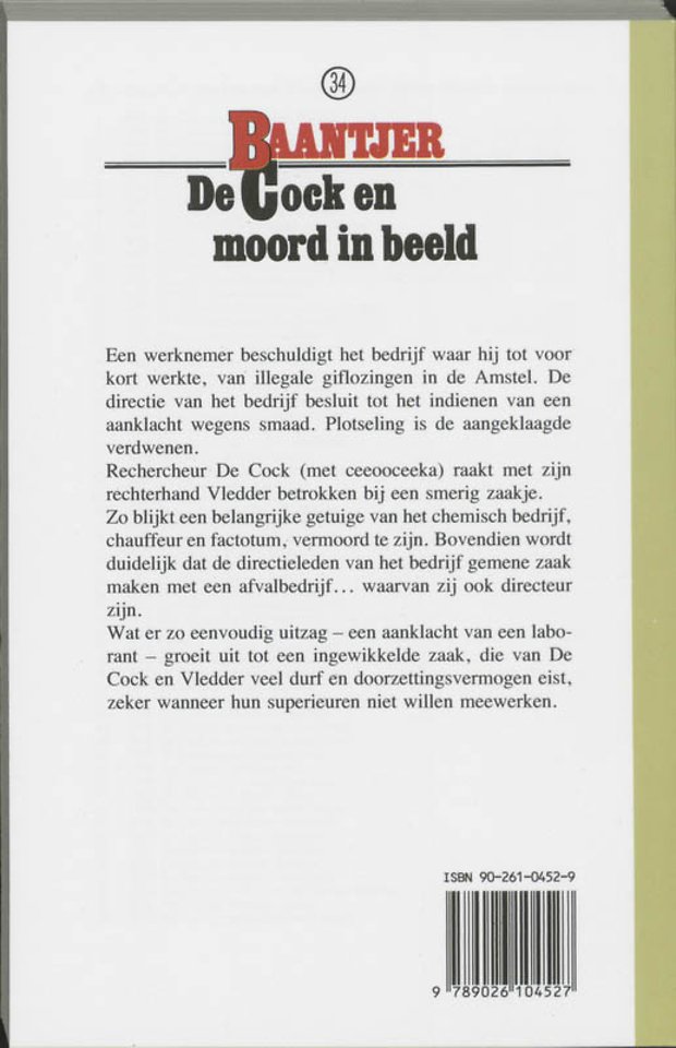Een werknemer beschuldigt het bedrijf waar hij tot voor kort werkte, van illegale giflozingen in de Amstel. De directie van het bedrijf besluit tot het indienen van een aanklacht wegens smaad. Plotseling is de aangeklaagde verdwenen. De Amsterdamse rechercheur De Cock van bureau Warmoesstraat raakt met zijn rechterhand Vledder betrokken bij een smerig zaakje. Zo blijkt een belangrijke getuige van het chemisch bedrijf, chauffeur en factotum, vermoord te zijn. Bovendien wordt duidelijk dat de directieleden van het bedrijf gemene zaak maken met een afvalbedrijf... waarvan zij ook directeur zijn. Wat er zo eenvoudig uitzag - een aanklacht van een laborant - groeit uit tot een ingewikkelde zaak, die van De Cock en Vledder veel durf en doorzettingsvermogen eist, zeker wanneer hun superieuren niet willen meewerken.