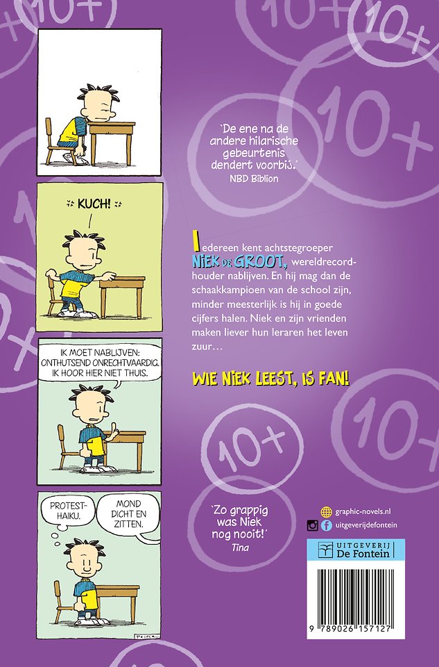 Achtstegroeper Niek de Groot, wereldrecordhouder nablijven, is terug met een serie supergrappige strips waarvan je over de grond rolt van het lachen. Iedereen kent achtstegroeper Niek de Groot, wereldrecordhouder nablijven. En hij mag dan de schaakkampioen van school zijn, minder meesterlijk is hij in goede cijfers halen. Niek en zijn vrienden maken liever hun leraren het leven zuur...