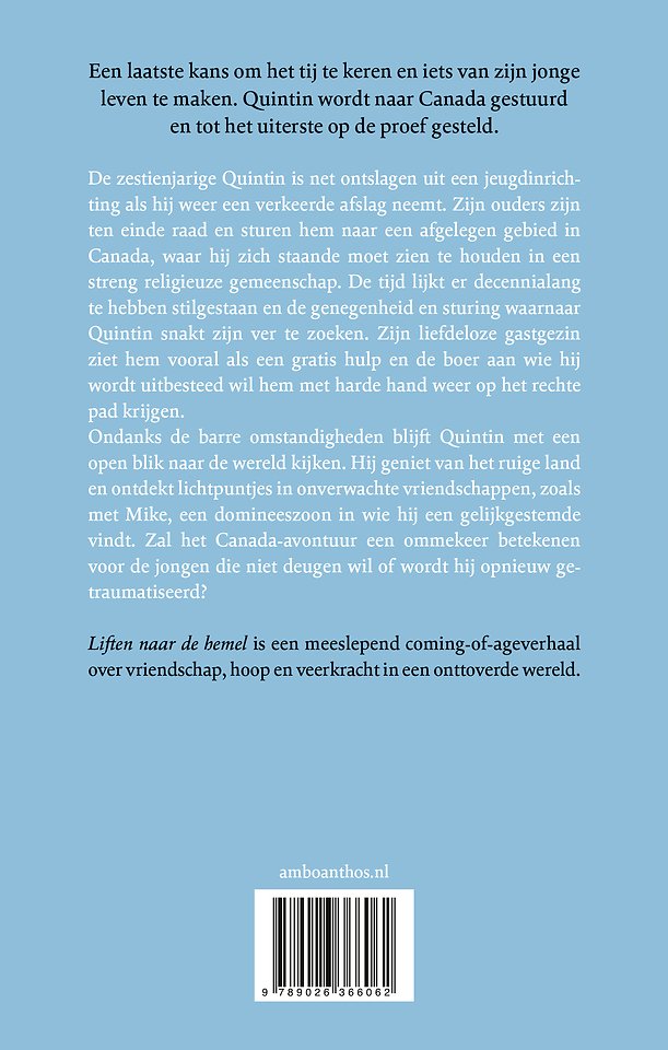 Ondanks de barre omstandigheden blijft Quintin met een open blik naar de wereld kijken. Hij geniet van het ruige land en sluit onverwachte vriendschappen: met een peuter, een kalfje en een dakloze indiaan. En dan is er Mike, een domineeszoon in wie hij een gelijkgestemde vindt. Zal zijn Canada-avontuur een ommekeer betekenen voor de jongen die niet deugen wil of wordt hij opnieuw getraumatiseerd?
