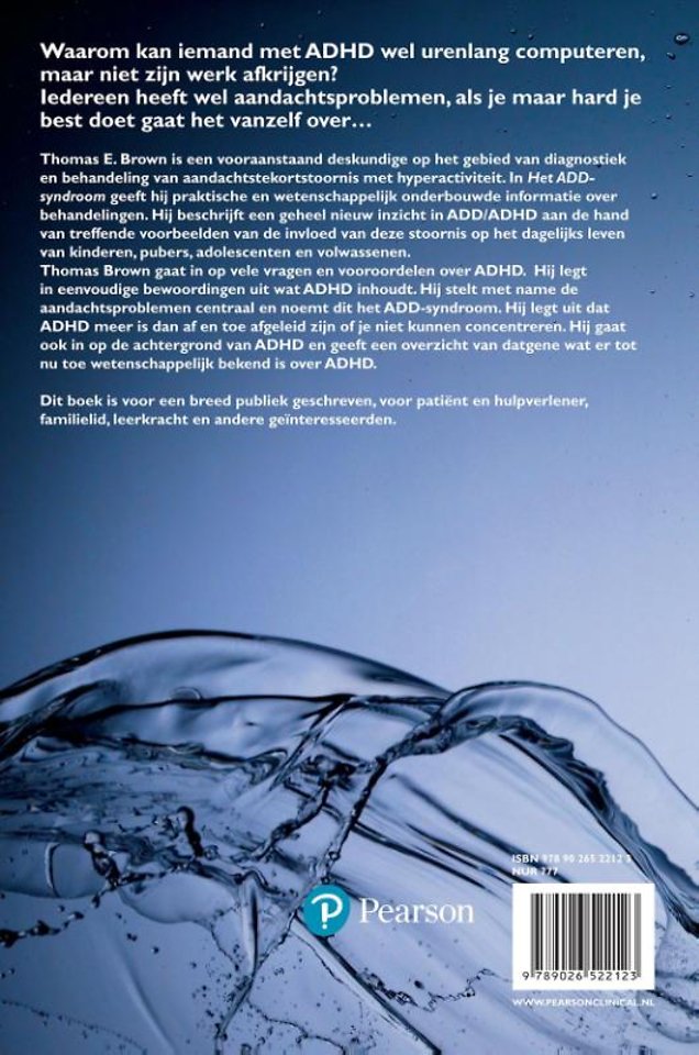 Thomas E. Brown is een vooraanstaand deskundige op het gebied van diagnostiek en behandeling van aandachtstekortstoornis met hyperactiviteit. In Het ADD-syndroom geeft hij praktische en wetenschappelijk onderbouwde informatie over behandelingen. Hij beschrijft een geheel nieuw inzicht in ADD/ADHD aan de hand van treffende voorbeelden van de invloed van deze stoornis op het dagelijks leven van kinderen, pubers, adolescenten en volwassenen.