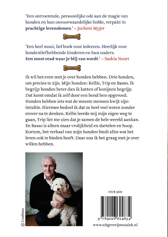 Voor het eerst vertelt Arthur Japin over de hond die hem heeft opgevoed en twee puppy’s die zijn kijk op het leven bepalen. Grote thema’s als liefde, hoop, moed en vriendschap komen aan de orde. Herkenbaar voor groot en klein, troostend, aangrijpend en toegankelijk. Een wonderschoon verhaal over hondentrouw, avontuur en vrolijkheid, voor iedereen die van het leven houdt. Martijn van der Linden werd bekroond met een Bronzen Penseel voor zijn prachtige illustraties in kleur. Ze brengen Kellie, Trip en Basso tot leven en nemen je mee naar een wereld van kwispels, modderpoten en vooral veel liefde.