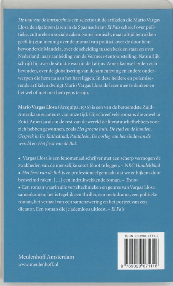 De taal van de hartstocht is een selectie uit de artikelen die Mario Vargas Llosa de afgelopen jaren in de Spaanse krant El Pais schreef over politieke, culturele en sociale zaken. Soms ironisch, maar altijd betrokken geeft hij zijn mening over de moraal van politici, over de door hem bewonderde.