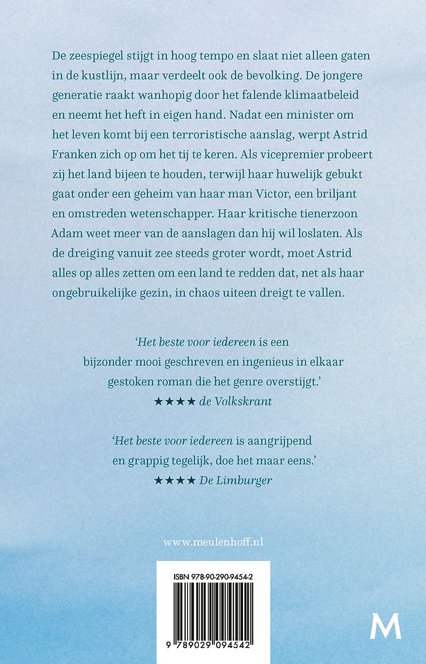 De zeespiegel stijgt in hoog tempo en slaat niet alleen gaten in de kustlijn, maar verdeelt ook de bevolking. De jongere generatie raakt wanhopig door het falende klimaatbeleid en neemt het heft in eigen hand. Nadat een minister om het leven komt bij een terroristische aanslag, werpt Astrid Franken zich op om het tij te keren. Als vicepremier probeert zij het land bijeen te houden, terwijl haar huwelijk gebukt gaat onder een geheim van haar man Victor, een briljant en omstreden wetenschapper. Haar kritische tienerzoon Adam weet meer van de aanslagen dan hij wil loslaten. Als de dreiging vanuit zee steeds groter wordt, moet Astrid alles op alles zetten om een land te redden dat, net als haar ongebruikelijke gezin, in chaos uiteen dreigt te vallen.