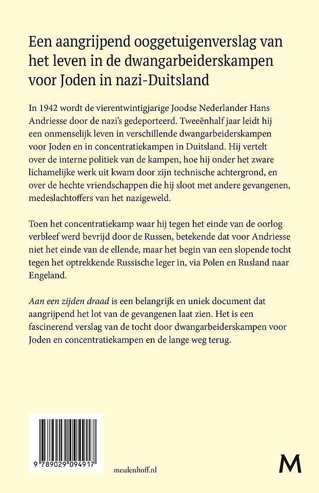 Aan een zijden draad is een belangrijk en uniek document dat aangrijpend het lot van de gevangenen laat zien. Het is een fascinerend verslag van de tocht door dwangarbeiderskampen voor Joden en concentratiekampen en de lange weg terug.