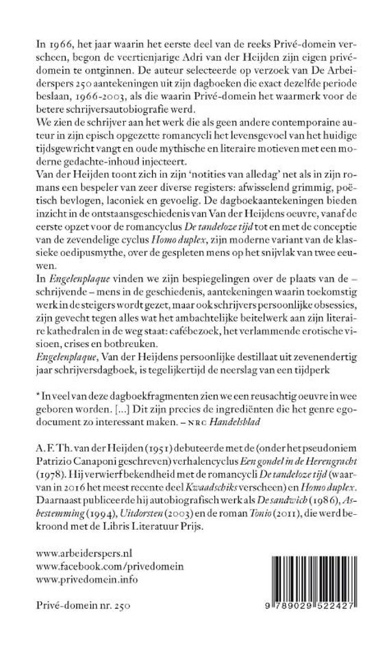 In 1966, het jaar waarin het eerste deel van de reeks Privé-domein verscheen, begon de veertienjarige Adri van der Heijden zijn eigen privédomein te ontginnen. De auteur selecteerde op verzoek van De Arbeiderspers 250 aantekeningen uit zijn dagboeken die exact dezelfde periode beslaan, 1966-2003, als die waarin Privé-domein het waarmerk voor de betere schrijversautobiografie werd.