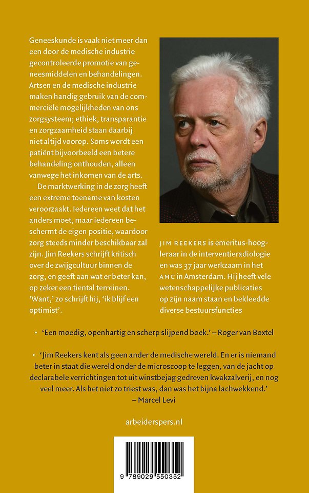 ‘Jim Reekers kent als geen ander de medische wereld. En er is niemand beter in staat die wereld onder de microscoop te leggen, van de jacht op declarabele verrichtingen tot uit winstbejag gedreven kwakzalverij, en nog veel meer. Als het niet zo triest was, dan was het bijna lachwekkend.’ – Marcel Levi