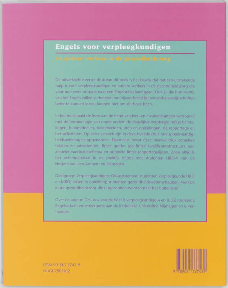 Engels voor verpleegkundigen en de uitverkochte eerste druk van dit boek is het bewijs dat het een uitstekend hulpmiddel voor verpleegkundigen en ander werkers in de gezondheidszorg die voor hun werk of stage naar een Engelstalig land gaan. Ook zij die hun kennis van het Engels willen verbeteren om bijvoorbeeld buitenlandse vaktijdschriften beter te kunnen lezen, kunnen er niet omheen.