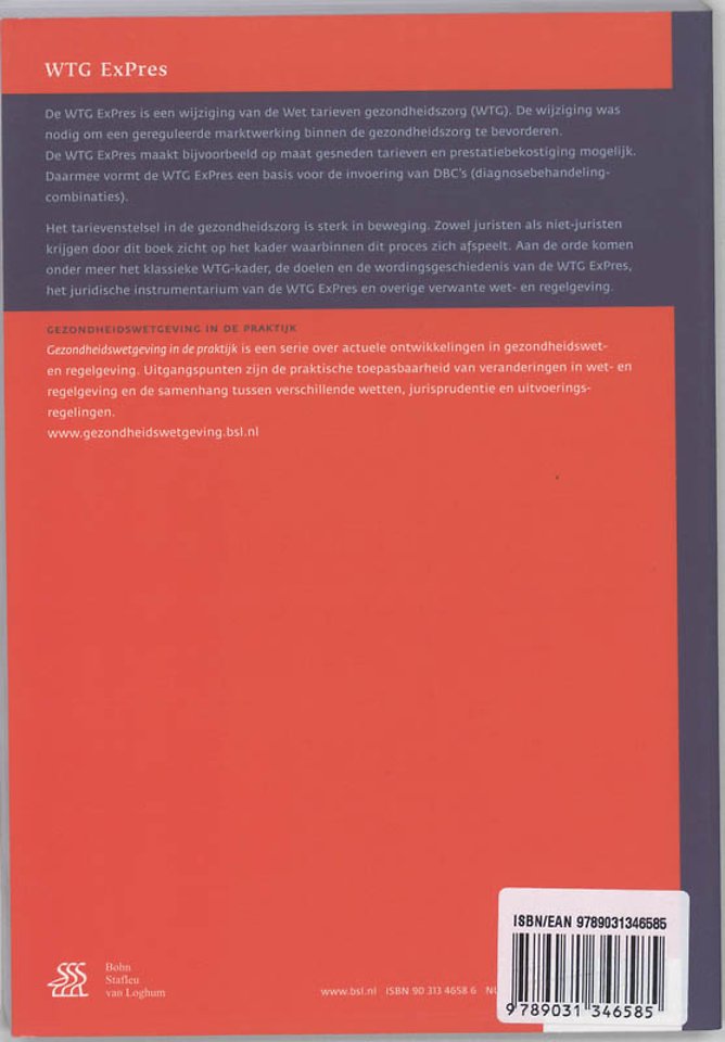 Het tarievenstelsel in de gezondheidszorg is sterk in beweging. Zowel juristen als niet-juristen krijgen door dit boek zicht op het kader waarbinnen dit proces zich afspeelt. Aan de orde komen onder meer de reguliere WTG, de doelen en de wordingsgeschiedenis van de 'WTG ExPres', het juridische instrumentarium van de 'WTG ExPres' en overige verwante wet- en regelgeving.