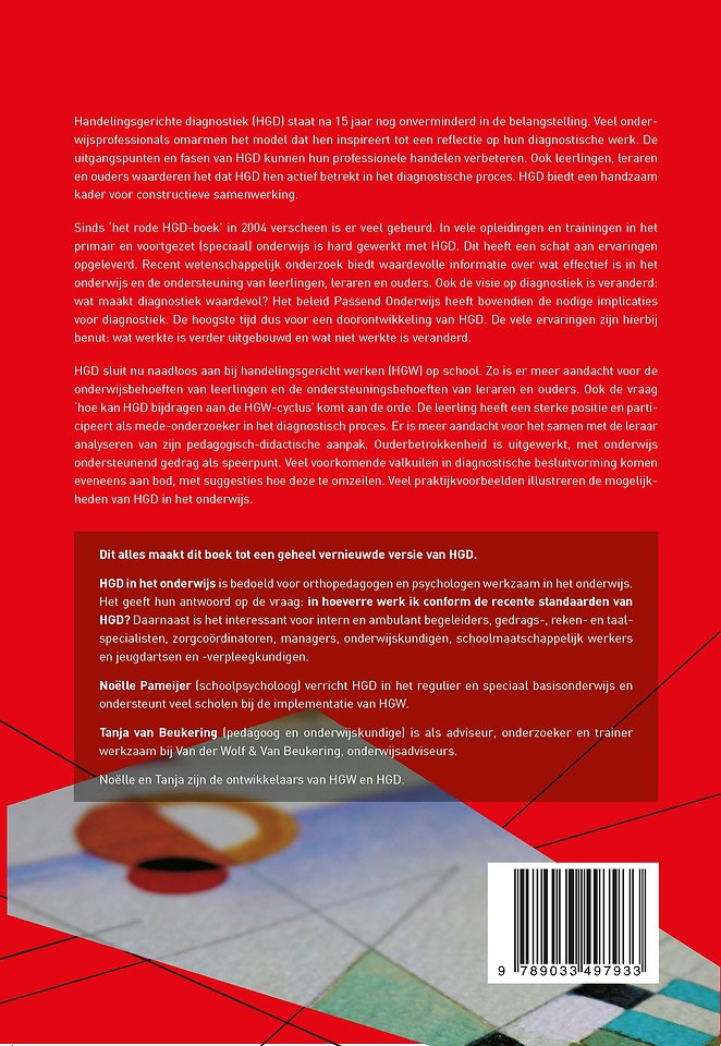 HGD sluit nu naadloos aan bij handelingsgericht werken (HGW) op school. Zo is er meer aandacht voor de onderwijsbehoeften van leerlingen en de ondersteuningsbehoeften van leraren en ouders. Ook de vraag 'hoe kan HGD bijdragen aan de HGW-cyclus' komt aan de orde. De leerling heeft een sterke positie en participeert als mede-onderzoeker in het diagnostisch proces. Er is meer aandacht voor het samen met de leraar analyseren van zijn pedagogisch-didactische aanpak. Ouderbetrokkenheid is uitgewerkt, met onderwijs ondersteunend gedrag als speerpunt. Veel voorkomende valkuilen in diagnostische besluitvorming komen eveneens aan bod, met suggesties hoe deze te omzeilen. Veel praktijkvoorbeelden illustreren de mogelijkheden van HGD in het onderwijs.