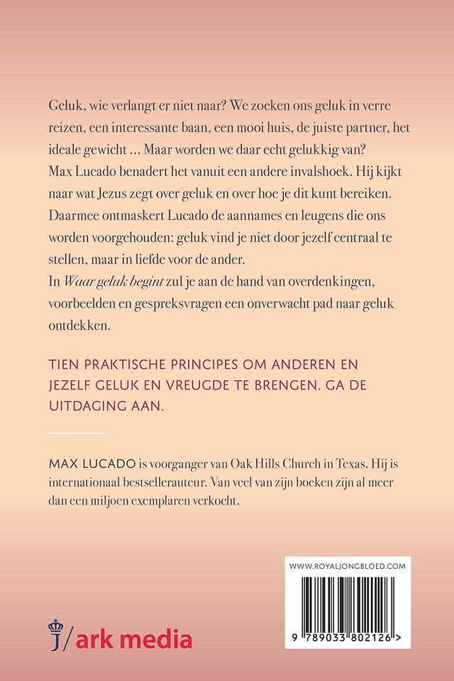 Geluk, wie verlangt er niet naar? We zoeken ons geluk in verre reizen, een interessante baan, een mooi huis, de juiste partner, het ideale gewicht... Maar worden we daar echt gelukkig van? Max Lucado benadert dit actuele thema vanuit een andere invalshoek. Hij kijkt naar wat Jezus over geluk zegt en over hoe je dit kunt bereiken. Daarmee ontmaskert Lucado de aannames en leugens die ons worden voorgehouden: geluk bereik je niet door jezelf centraal te stellen, maar in liefde voor de ander. Aan de hand van overdenkingen, voorbeelden en gespreksvragen ontdekt de lezer een onverwacht pad naar geluk.