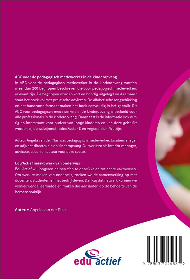 ABC voor de pedagogisch medewerker in de kinderopvang is bedoeld voor alle professionals in de kinderopvang. Daarnaast staat er ook nuttige informatie in voor ouders van jonge kinderen en kan het gebruikt worden bij de welzijnmethodes Factor-E en Angerenstein Welzijn.