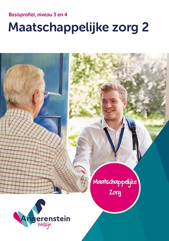 Maatschappelijk zorg 2 is een van de twee basisprofielboeken van de methode Angerenstein Welzijn voor de uitstromen van maatschappelijk zorg. Dit bronnenboek bevat informatie over de onderwerpen: stoornissen bij kinderen, stoornissen bij volwassenen, cognitieve stoornissen bij ouderen, verslaving, medicatie, sociale problematiek, pesten, analfabetisme en laaggeletterdheid, onveilig thuis, ethiek, organisatie en structuur, functies in organisaties, financiering van de zorg, kwaliteitsinstrumenten, ontwikkelen als professional, deskundigheidsbevordering, adviseren, voorlichten en presenteren, werk en planning en onderhandelen.
