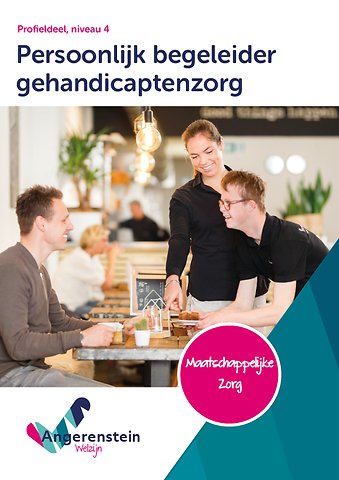 Persoonlijk begeleider gehandicaptenzorg is een van de profielboeken voor niveau 4 van de methode Angerenstein Welzijn. Dit bronnenboek bevat kennis over de onderwerpen: ondersteuningsplan, dagbesteding en werk, informatie verzamelen met de cliënt, specifieke beperkingen, levensfasegericht begeleiden, specifieke begeleidingsmethoden, voorlichting en advies geven, wetgeving, dillema’s en paradigma’s in GHZ, teamvorming, coördineren en leidinggeven en begeleiden van nieuwe collega’s.