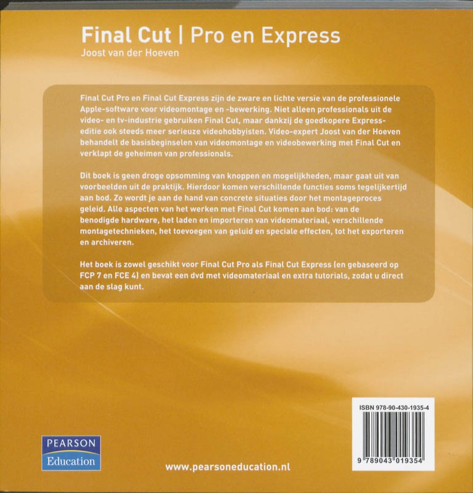 Het boek is zowel geschikt voor Final Cut Pro als Final Cut Express (en gebaseerd op FCP 7 en FCE 4) en bevat een dvd met videomateriaal en extra tutorials, zodat u direct aan de slag kunt.