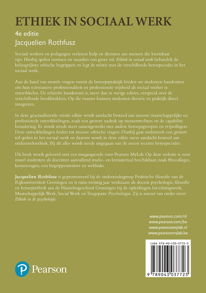 Sociaal werkers en pedagogen verlenen hulp en diensten aan mensen die kwetsbaar zijn. Hierbij spelen normen en waarden een grote rol. Ethiek in sociaal werk behandelt de belangrijkste ethische begrippen en legt de relatie met de verschillende beroepscodes in het sociaal werk. Aan de hand van morele vragen vanuit de beroepspraktijk bieden we studenten handvatten om hun normatieve professionaliteit en professionele wijsheid als sociaal werker te ontwikkelen.