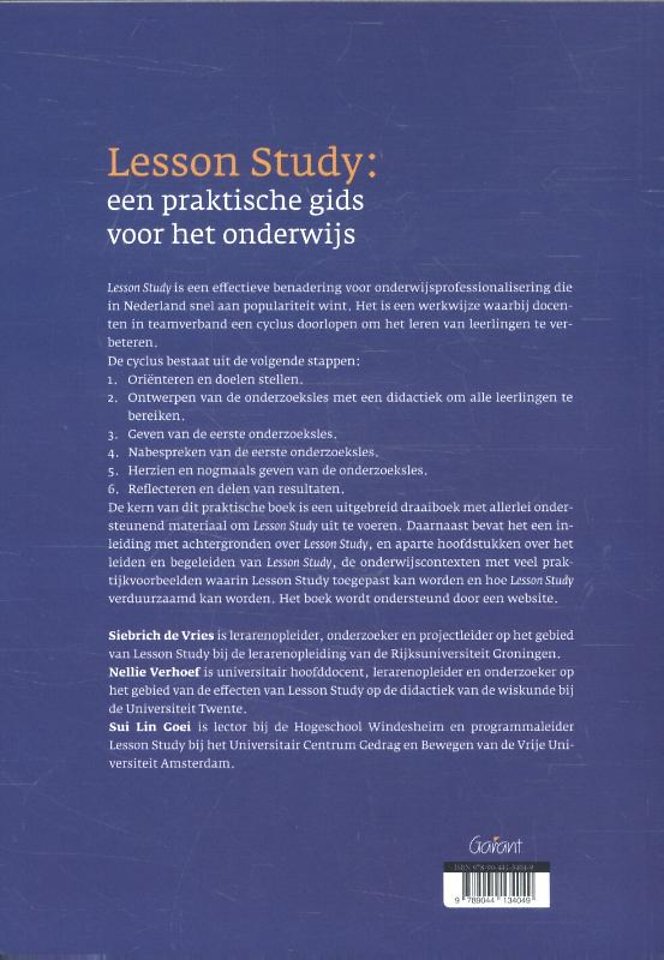 De kern van dit praktische boek is een uitgebreid draaiboek met allerlei ondersteunend materiaal om Lesson Study uit te voeren. Daarnaast bevat het een inleiding met achtergronden over Lesson Study, en aparte hoofdstukken over het leiden en begeleiden van Lesson Study, de onderwijscontexten met veel praktijkvoorbeelden waarin Lesson Study toegepast kan worden en hoe Lesson Study verduurzaamd kan worden. Het boek wordt ondersteund door een website.