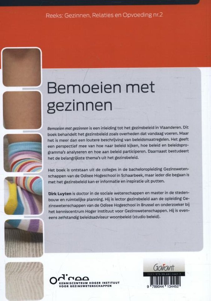 Bemoeien met gezinnen is een inleiding tot het gezinsbeleid in Vlaanderen. Dit boek behandelt het gezinsbeleid zoals overheden dat vandaag voeren. Maar het is meer dan een loutere beschrijving van beleidsmaatregelen. Het geeft een perspectief mee van hoe naar beleid kijken, hoe beleid en beleidsprogramma's analyseren en hoe aan beleid participeren. Daarnaast bestudeert het de belangrijkste thema's uit het gezinsbeleid.