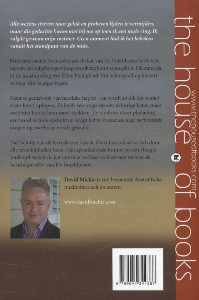 Muizenmonster, Sneeuwleeuw, de kat van de Dalai Lama heeft vele namen. Als uitgehongerd jong zwerfkatje komt ze terecht in Dharamsala, in de huishouding van Zijne Heiligheid. Vol belangstelling luistert ze naar zijn raadgevingen. Maar ze geniet ook van heerlijke hapjes - en wordt zo dik dat ze niet meer kan traplopen. Ze heeft een oogje op een naburige kater, maar weet niet hoe ze hem moet strikken. Ze is jaloers als er plotseling een hond in huis opduikt en krijgt het te kwaad als haar vertrouwde omgeving overhoop wordt gehaald. Met behulp van de levenslessen van de Dalai Lama slaat ze zich door alle moeilijkheden heen. Met sprankelende humor en een vleugje ondeugd vertelt de kat ons haar verhaal en leert ons meteen de basisbeginselen van het boeddhisme.