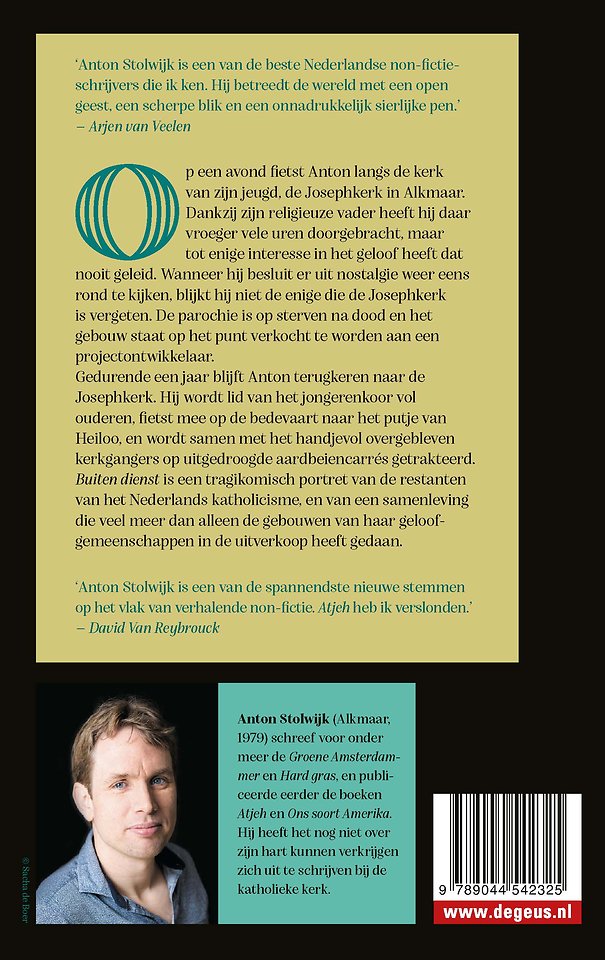 Buiten dienst is een tragikomisch portret van de restanten van het Nederlands katholicisme, en van een samenleving die veel meer dan alleen de gebouwen van haar geloofsgemeenschappen in de uitverkoop heeft gedaan.