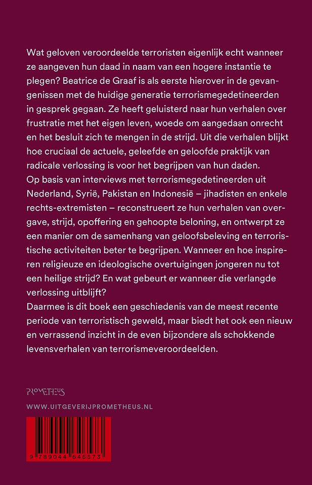 Wat geloven veroordeelde terroristen eigenlijk echt wanneer ze aangeven hun daad in naam van een hogere instantie te plegen? Beatrice de Graaf is als eerste hierover in de gevangenissen met de huidige generatie terrorismegedetineerden in gesprek gegaan.