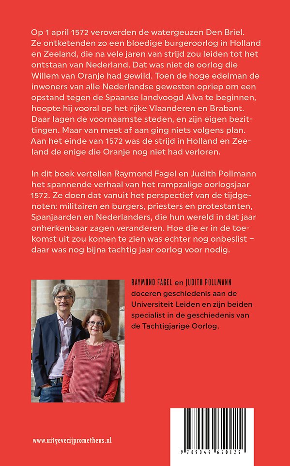In dit boek vertellen Raymond Fagel en Judith Pollmann het spannende verhaal van het rampzalige oorlogsjaar 1572. Ze doen dat vanuit het perspectief van de tijdgenoten: militairen en burgers, priesters en protestanten, Spanjaarden en Nederlanders, die hun wereld in dat jaar onherkenbaar zagen veranderen. Hoe die er in de toekomst uit zou komen te zien was echter nog onbeslist - daar was nog bijna tachtig jaar oorlog voor nodig.
