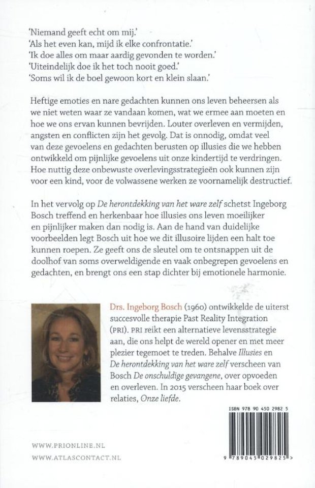 In het vervolg op 'De herontdekking van het ware zelf' schetst Ingeborg Bosch treffend en herkenbaar hoe illusies ons leven moeilijker en pijnlijker maken dan nodig is. Aan de hand van duidelijke voorbeelden legt Bosch uit hoe we dit illusoire lijden een halt toe kunnen roepen. Ze geeft ons de sleutel om te ontsnappen uit de doolhof van soms overweldigende en vaak onbegrepen gevoelens en gedachten, en brengt ons een stap dichter bij emotionele harmonie.