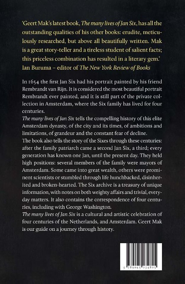 The many lives of Jan Six tells the compelling history of this elite Amsterdam dynasty, of the city and its times, of ambitions and limitations, of grandeur and the constant fear of decline. The book also tells the story of the Sixes through these centuries: after the family patriarch came a second Jan Six, a third; every generation has known one Jan, until the present day. They held high positions: several members of the family were mayors of Amsterdam. Some came into great wealth, others were prominent scientists or stumbled through life hunchbacked, disinherited and broken-hearted. The Six archive is a treasury of unique information, with notes on both weighty affairs and trivial, everyday matters. It also contains the correspondence of four centuries, including with George Washington.